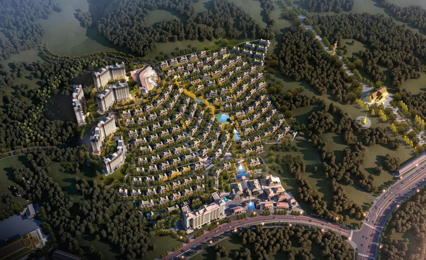 辰興國際健康城項目位於我國熱帶生態系統保存最完整的地區——雲南西雙版納自治州首府景洪市的南區,西鄰宗教與歷史文化氣息濃厚的勐泐大佛寺,南接原始森林,北望景洪市區,總用地面積 335 畝,總建築面積約 29 萬平方米。具備熱帶獨特的自然環境,濃郁的民族風情,地理環境優越,文化累積與歷史傳承悠遠。該項目示範區目前已建成,示範區由商業和住宅兩部分組成。商業部分沿城市界面展開佈置,確定了有悅榕莊旗下品牌酒店、網紅幼兒園、特色商業區等;住宅部分則遠離城市喧囂,布置於能夠俯瞰秀美風景的山坡之上,透過建築圍合營造的空間以及運用自然地勢形成的高差,將商業部分與住宅部分隔開,形成動靜分明的兩組建築群落。
